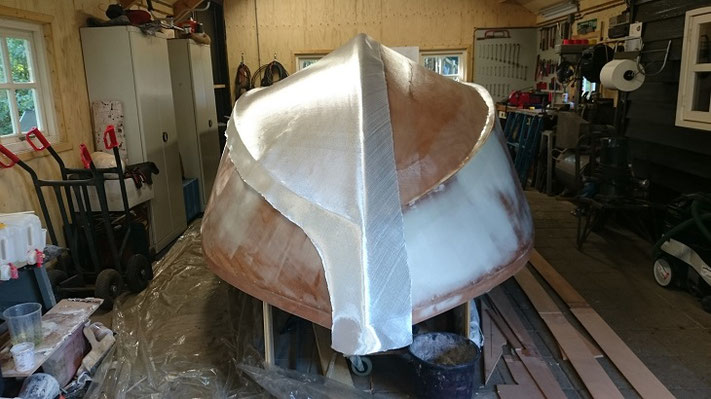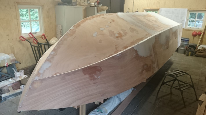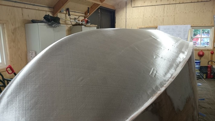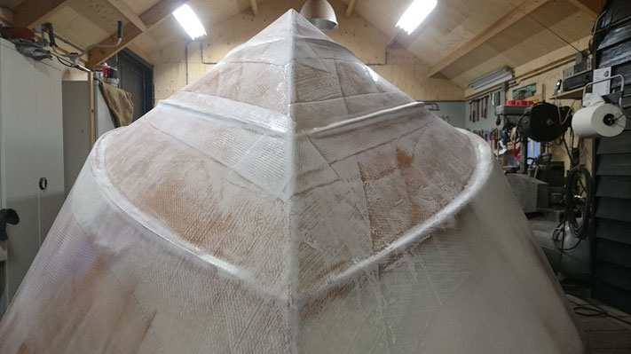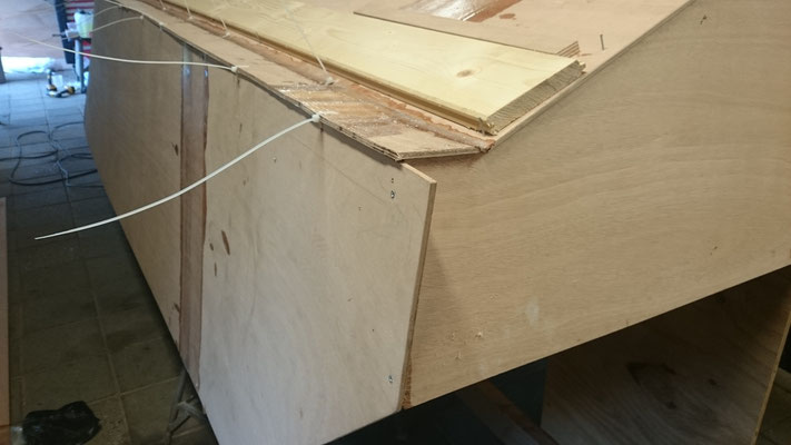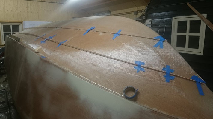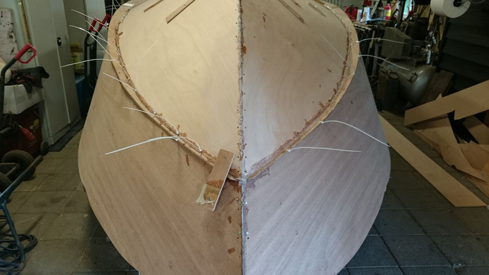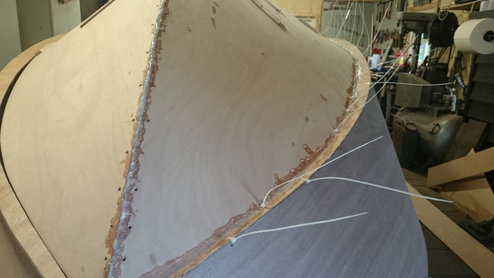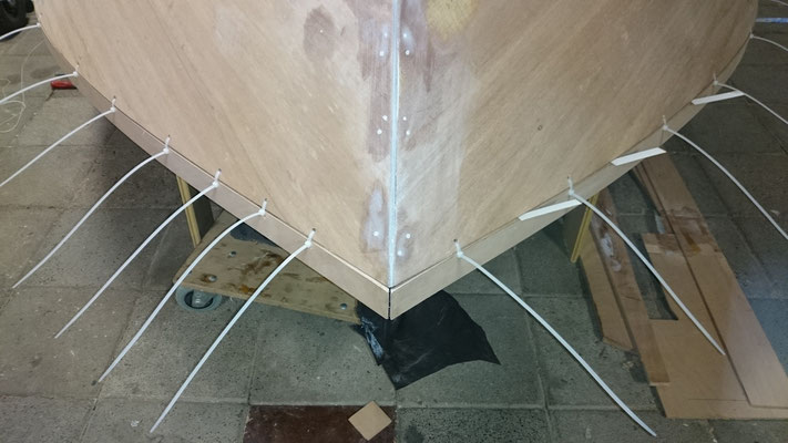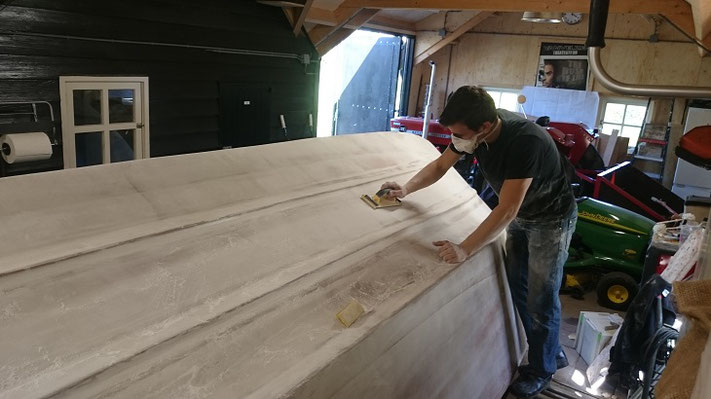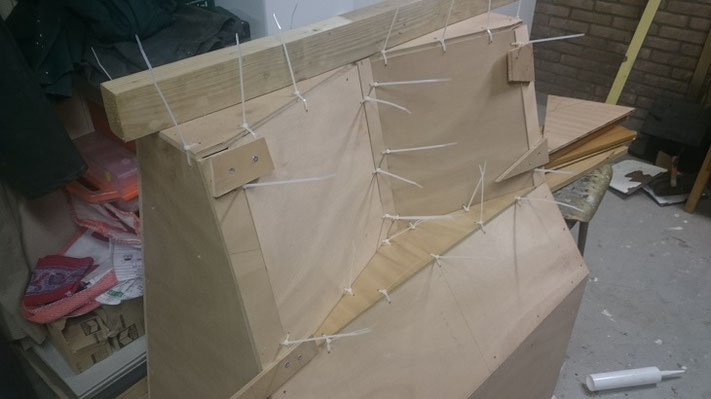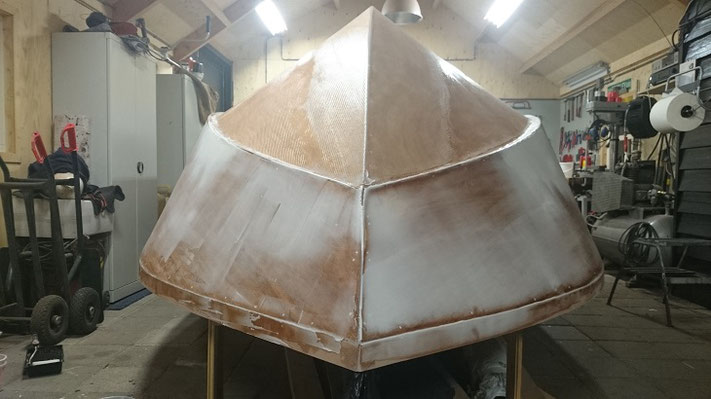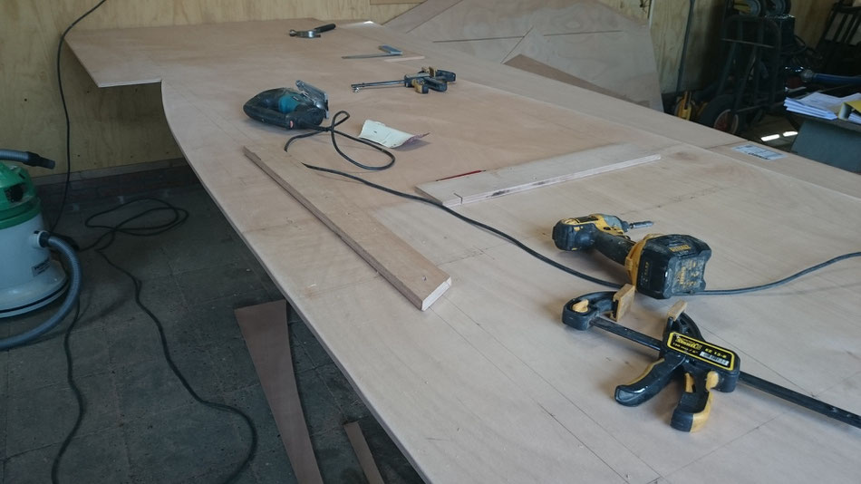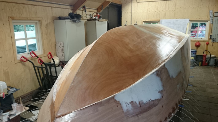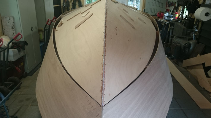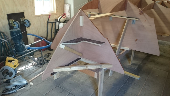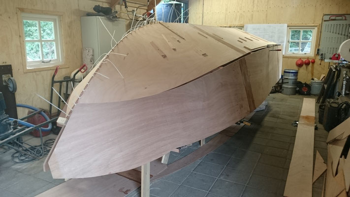 De boot gaat ondersteboven gebouwd worden. Om alles tijdens de bouwfase bij elkaar te kunnen houden, wordt dit op een frame bevestigd. Dit frame exact op maat en waterpas afgesteld.