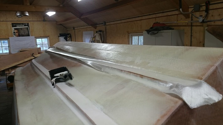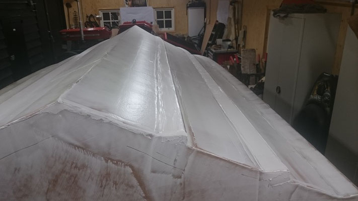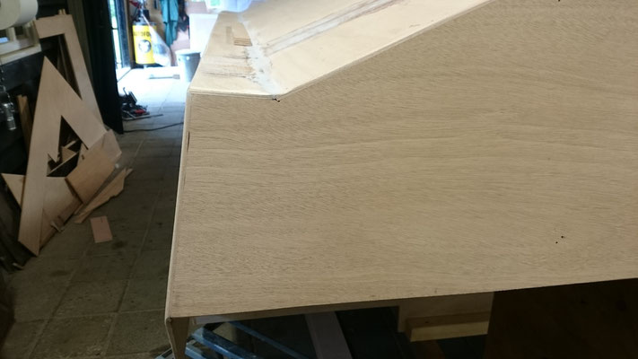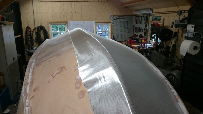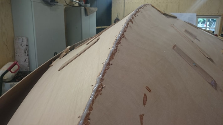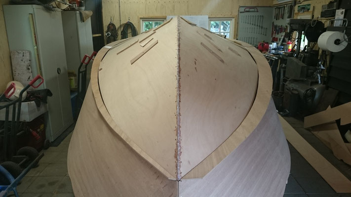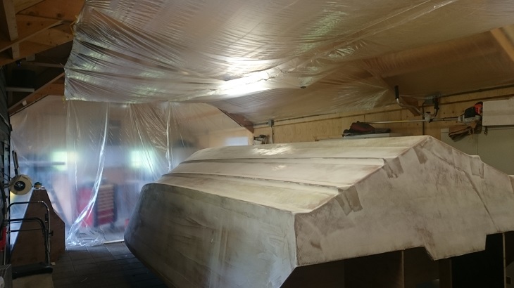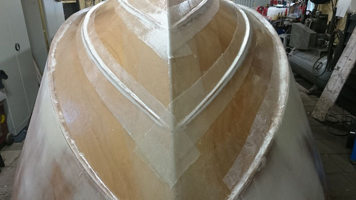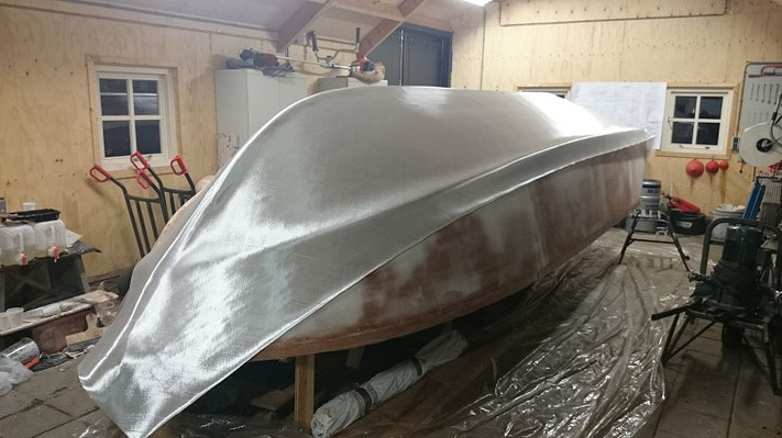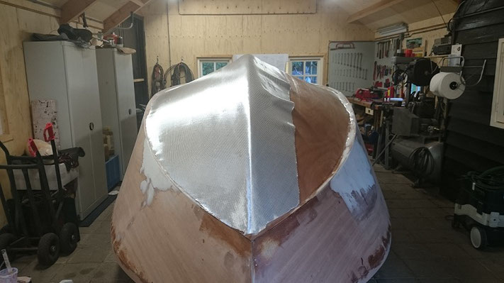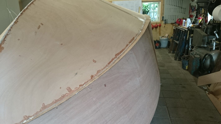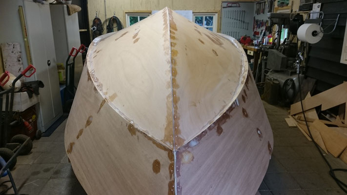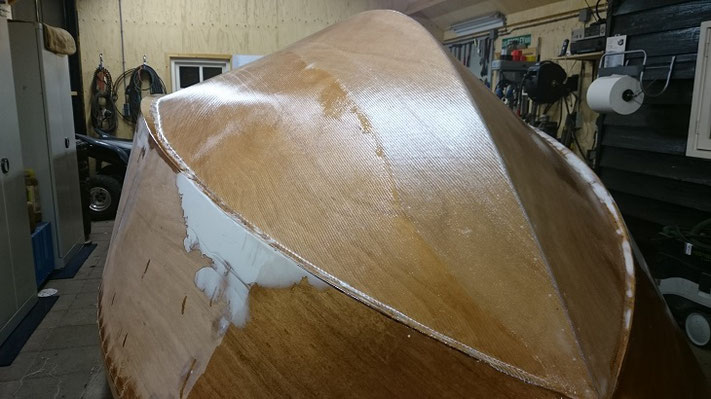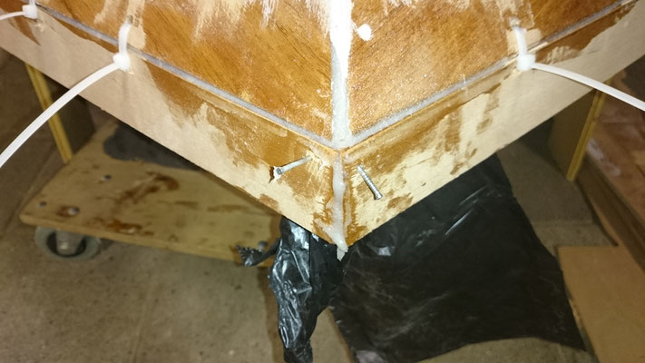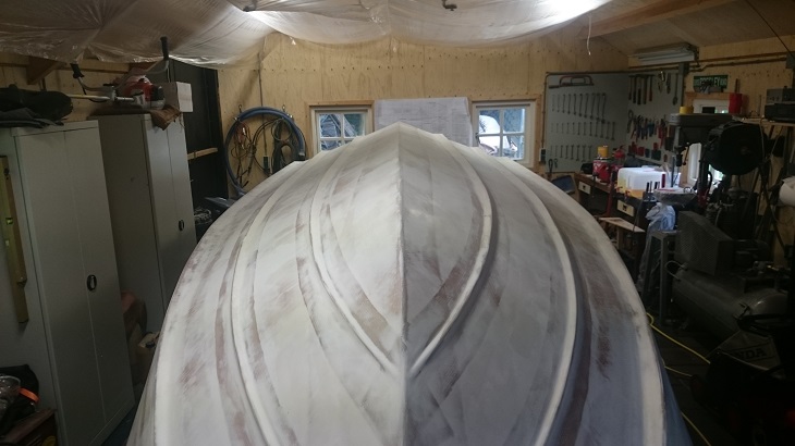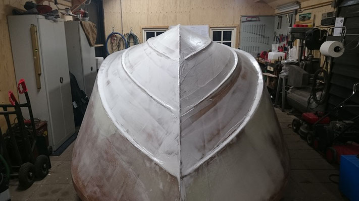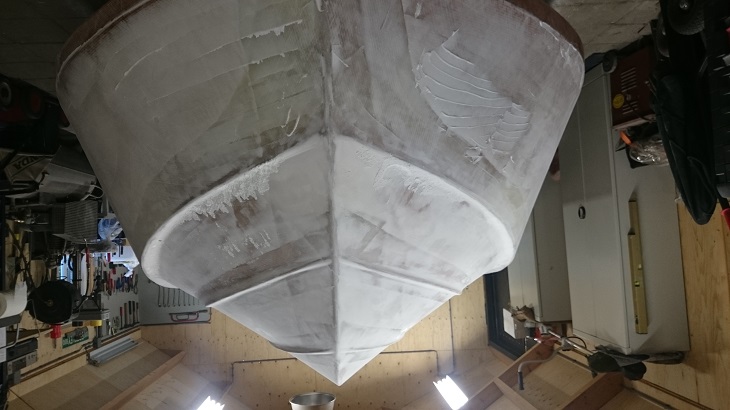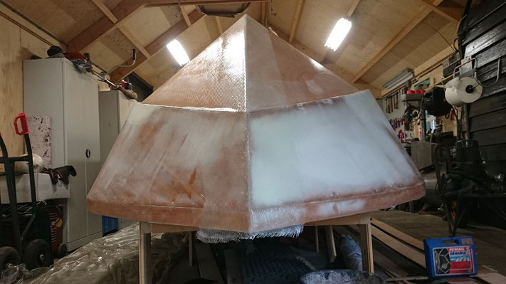 De boot gaat ondersteboven gebouwd worden. Om alles tijdens de bouwfase bij elkaar te kunnen houden, wordt dit op een frame bevestigd. Dit frame exact op maat en waterpas afgesteld.