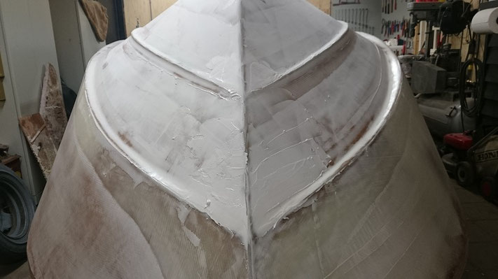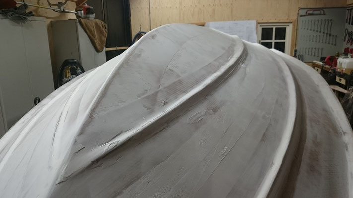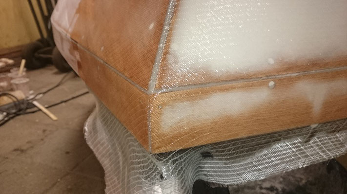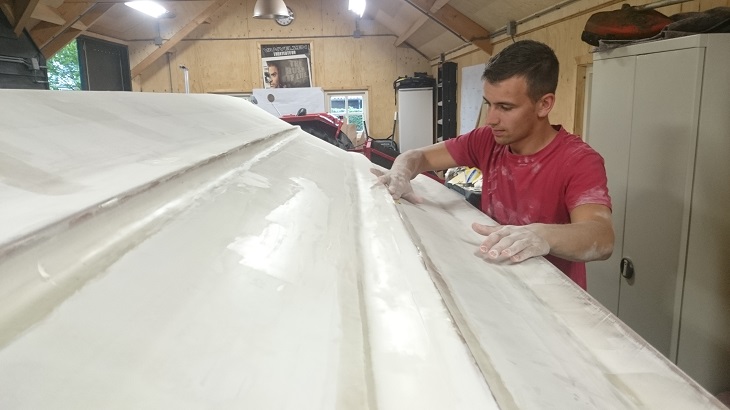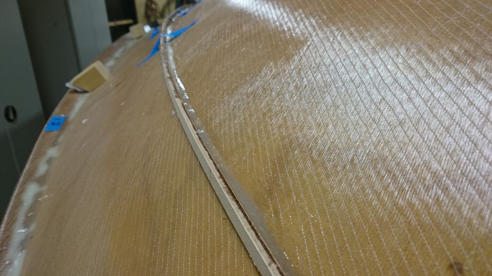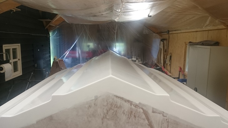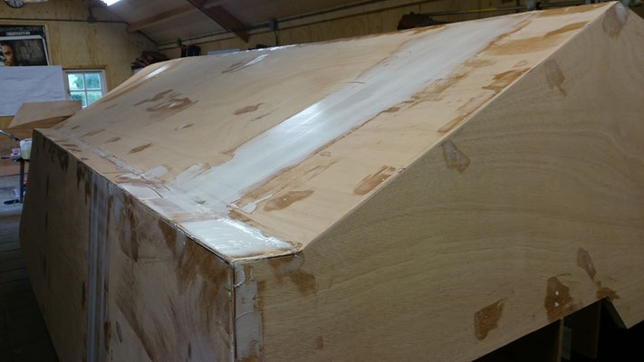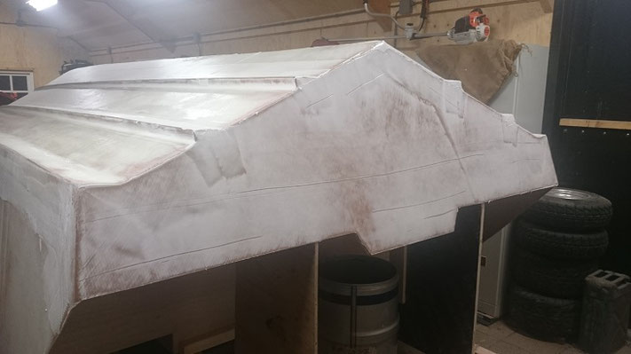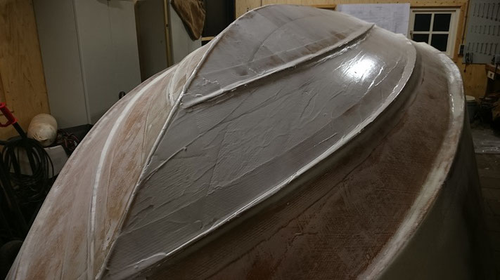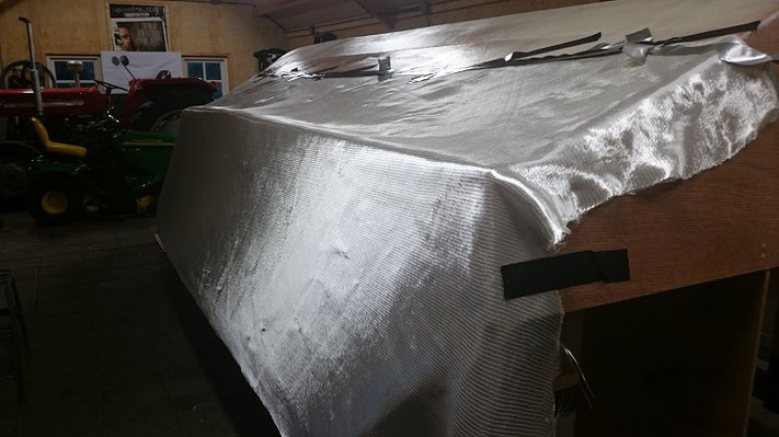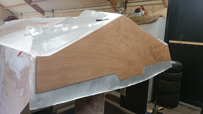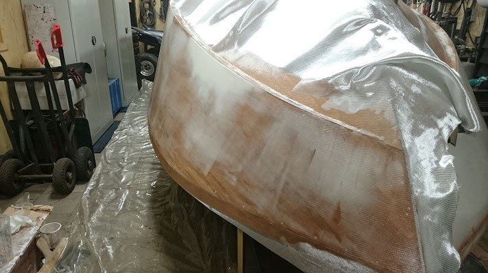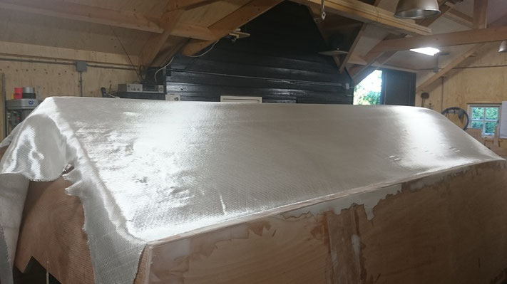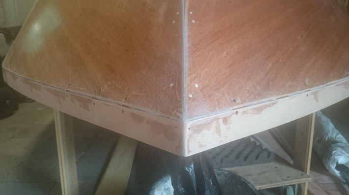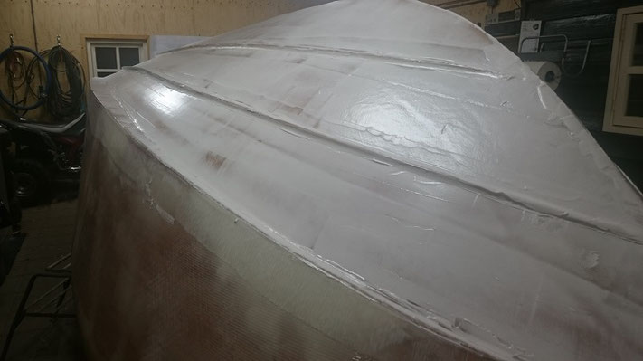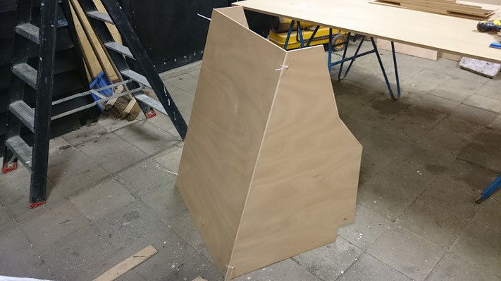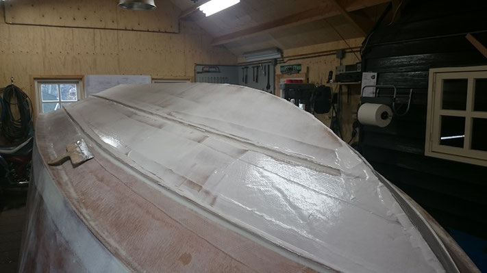 De boot gaat ondersteboven gebouwd worden. Om alles tijdens de bouwfase bij elkaar te kunnen houden, wordt dit op een frame bevestigd. Dit frame exact op maat en waterpas afgesteld.