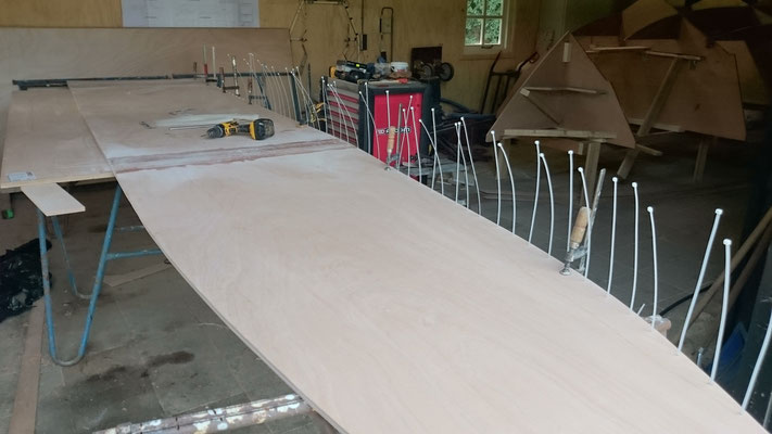 Ook ben ik gestart met het aftekenen van de frames. Dit gaat het skelet van de boot vormen.